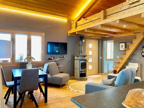Animaux bienvenus - Armoires encastrées chambre - Armoires encastrées hall - Baignoire à remous - Cheminée | Poêle - Cuisine ouverte - Dressing - Grande chambre principale - Grande surface vitrée - Lumineux - Mezzanine - Pierre-ollaire
